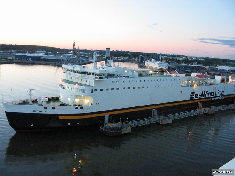 Как то сразу вспомнилась родина, и как я летел регулярным рейсом на самолете из Москвы в Питер. За свою недолгую жизнь на самолете внутри России я летал всего 3 раза. Первый раз был без особых приключений, второй раз я летел в багажном отсеке ТУ-134, а третий раз я добирался из Москвы в Питер. Зная, что вечером ленинградка стоит намертво, я выехал с работы за три часа до вылета самолета. Маршрутка долетела быстро, так что мне нужно было убить еще пару часов. Выеди я полчаса позже – не факт, что вообще успел бы на самолет. Зал Шереметьево-1 – примерно как пара актовых залов школы. И там тусуется несколько тыщ человек в ожидании своих рейсов. Прокуковав два часа, прорвался в зону безопасности, еще полчаса куковал в прокуренном зале ожидания. После того как все уселись в самолет и он вырулил на взлетную полосу – выяснилось, что у него накрылась приборная панель. Еще полчаса меняли приборную панель, потом какой то американец, не выдержав стояния в пекле и духоте на солнце посреди асфальтового моря стал кидаться на стюардесс и громко выражаться. Еще час ждали ментовку, которая приехала за этим несчастным, оформляла протокол и выгружала его из самолета. Прилетели в Питер, я долго искал средства транспорта по социальным ценам, дабы попасть в центр. И наконец, на выходе из метро меня заловили питерские менты и долго и нудно мучили на предмет документов, билетов и прочей фигни. Н круг, от порога до порога, это путешествие заняло почти 8 часов – примерно столько же, сколько я ехал бы на поезде. Так вот, к чему это я – когда такая здоровенная махина-паром выплывает из за угла, это ощущается как примерно запуск Гагарина в космос и совершенно не верится, что это событие регулярное, спланированное и происходящее регулярно как ежечасный бой хорошо отлаженных часов.